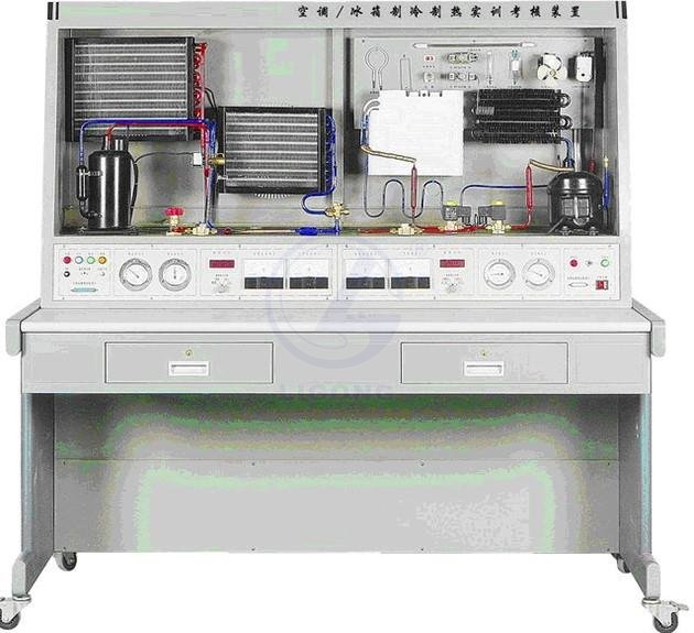 2、整套實(shí)訓(xùn)裝置集空調(diào)、冰箱的制冷系統(tǒng)、電氣控制系統(tǒng)、故障模擬系統(tǒng)于一體,系統(tǒng)真實(shí)完整,結(jié)構(gòu)清晰、緊湊