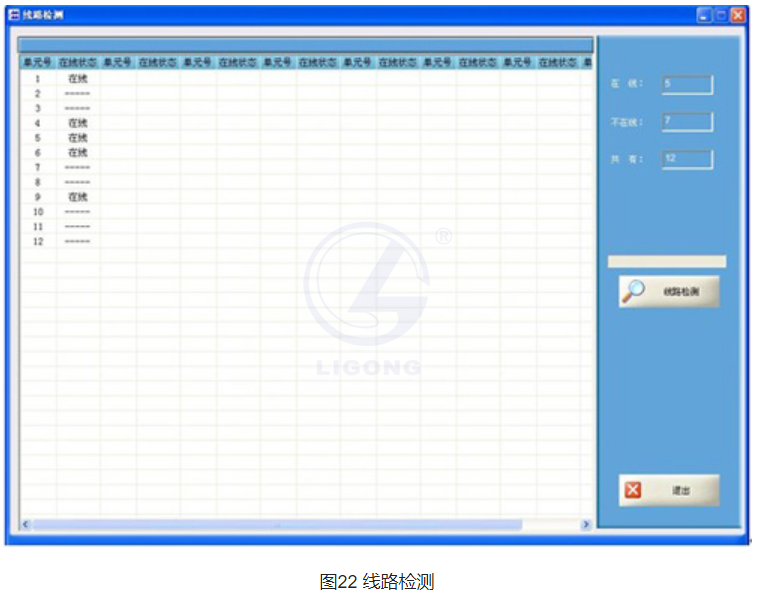 在會(huì)議開(kāi)始之前,首先要對(duì)接入設(shè)備進(jìn)行檢測(cè)。選擇主界面的【線路檢測(cè)】按鈕,可對(duì)已接入注機(jī)的單元進(jìn)行檢測(cè)。如圖22所示。