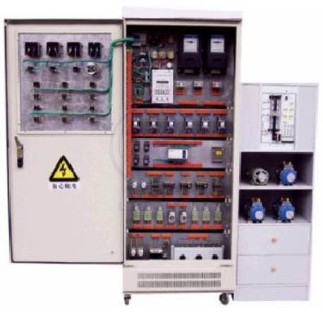 柜內(nèi)裝有完成各種照明電路所需的單相電度表、日光燈、單聯(lián)開關(guān)、插座、感應(yīng)開關(guān)、漏電開關(guān)等,以及電氣控制所需要的多種低壓電器,如漏電斷路器、熔斷器、電流互感器、交流接觸器、時間繼電器、熱繼電器、中間繼電器、行程開關(guān)、按鈕、信號燈、轉(zhuǎn)換開關(guān)、電壓表、電流表、功率表及電度表等,為了延長電器使用壽命,各電器的接點都與接線端子相連,再由接線端子與被控制電氣連接。