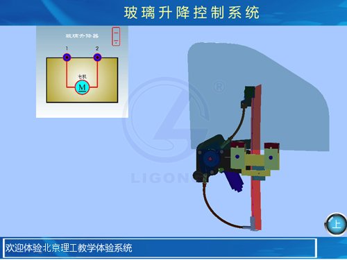 玻璃升降器虛擬仿真教學(xué)軟件中的電動機(jī)是由雙聯(lián)開關(guān)按鈕控制,設(shè)有升、降、關(guān)等三個工作狀態(tài),開關(guān)不操縱時自動停在 " 關(guān) " 的位置上。縱電路設(shè)有總開關(guān)(中央控制)和分開關(guān),兩者線路并聯(lián)。在汽車軟件教學(xué)中也能完全展現(xiàn)出來,適用于各類院校教學(xué),歡迎定制!