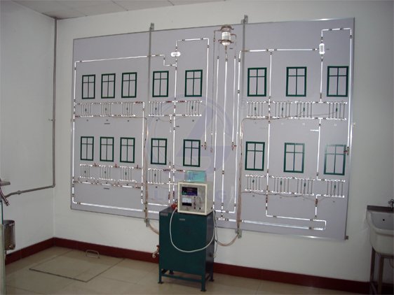 4、模擬供暖鍋爐 ;給水箱;集氣罐;高位膨脹水箱;模擬房間墻面;散熱器;模擬采暖散熱器片、采暖供水干支管道、回水干支管道、水平式單管順流式系統(tǒng);水平式單管跨越式系統(tǒng);垂直式單管順流式系統(tǒng);垂直式單管跨越式系統(tǒng);雙管系統(tǒng)。