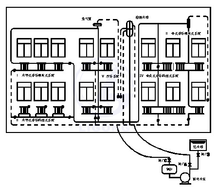 采暖系統(tǒng)是由熱源、管道和散熱器所組成。熱源是生產(chǎn)熱能的部分,管道是連接熱源和散熱器的橋梁。在圖中所示的系統(tǒng)中,由管道將鍋爐、水泵和散熱器連接起來(lái)。系統(tǒng)工作前,先將水充滿給水箱,然后打開(kāi)閥門(mén)B和C,同時(shí)啟動(dòng)水泵,向系統(tǒng)充水。充水時(shí)不斷地開(kāi)關(guān)集氣罐放氣閥,主系統(tǒng)中的空氣從集氣罐和膨脹水箱中排出。