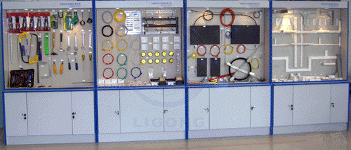 隨著網絡技術的發(fā)展,綜合布線技術日新月異,本公司研制的LG-B04型 綜合布線實訓室成套設備由12塊不同功能的金屬面板組成的模擬墻。綜合布線實訓室成套設備每座實訓模擬墻上進管孔、鋼面板、安裝孔、縱向凹槽、橫向凹槽等功能模塊。鋼面板表面有橫向、縱向網狀均勻布置的安裝孔,鋼板內側對應安裝孔位置焊有螺帽,安裝孔直徑5毫米,開孔間距為60毫米。綜合布線實訓室成套設備模擬墻正上方開有進管孔直徑20毫米,由橋架引20mmPVC管彎折操作后通過進管孔進入模擬墻,再由上部橫向凹槽穿出。