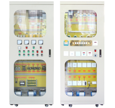 1、LG-LDQ02型 智能建筑電氣控制線路實(shí)訓(xùn)裝置采用正反二面開門的離墻式威圖電氣控制柜,且正反面同時(shí)都可以操作,柜體中寬度能保證兩個(gè)學(xué)生同時(shí)合作接線實(shí)訓(xùn)的需要,其外形尺寸寬×厚×高分別為:800×600×2000 mm。柜體采用厚度為國標(biāo)1.5以上的優(yōu)質(zhì)鋼板,柜門采用厚度為國標(biāo)2.0以上的優(yōu)質(zhì)鋼板并安裝四塊大的玻璃,學(xué)生能通過玻璃看清柜內(nèi)各元器件及相應(yīng)的動(dòng)作,金屬表面噴塑,柜體中間有二塊優(yōu)質(zhì)環(huán)氧樹脂絕緣板和相應(yīng)的支架系統(tǒng)隔離正反兩個(gè)柜體,安裝板上安裝智能建筑電氣控制線路各實(shí)訓(xùn)考核模塊。各元器件所有的接線端都連接至相應(yīng)的專用實(shí)訓(xùn)接線端子上,每個(gè)接線端上都套有用電腦打印接線端名稱及編號(hào)的套管,并且更換方便。被控制電機(jī)安裝于電氣控制柜內(nèi)。