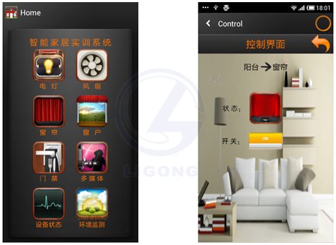 系統(tǒng)實(shí)現(xiàn)了家居安防、家電遙控、視頻監(jiān)控、門(mén)禁控制、窗簾自動(dòng)控制、場(chǎng)景聯(lián)動(dòng)等功能,并支持遠(yuǎn)程WEB、移動(dòng)手持設(shè)備訪問(wèn)和控制等。使學(xué)生在實(shí)訓(xùn)過(guò)程中深入的理解物聯(lián)網(wǎng)的相關(guān)技術(shù),在智能家居領(lǐng)域中實(shí)現(xiàn)構(gòu)建、監(jiān)控、安防、遙控等功能的原理和實(shí)施細(xì)節(jié)。激發(fā)學(xué)生學(xué)習(xí)興趣,并通過(guò)系統(tǒng)開(kāi)放式的平臺(tái)環(huán)境,自己動(dòng)手實(shí)現(xiàn)學(xué)習(xí)、創(chuàng)新及應(yīng)用。