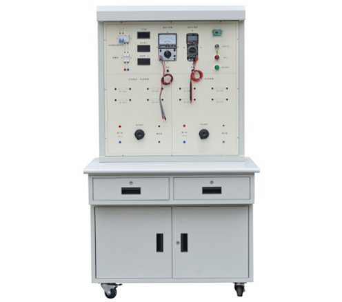 (1)實(shí)訓(xùn)臺(tái)主體部分采用全鋼結(jié)構(gòu),鋼板亞光噴塑,美觀耐用,臺(tái)面采用鋁塑板印制而成,整個(gè)實(shí)訓(xùn)臺(tái)由漏電保護(hù)開關(guān)、熔斷器、開關(guān)電源、數(shù)顯計(jì)時(shí)器、智能刷卡啟動(dòng)電路板、單相交流調(diào)壓器、單相直流調(diào)壓器、交流接觸器、數(shù)字電壓表、數(shù)字電流表、指針萬用表、數(shù)字萬用表、照明日光燈、各種開關(guān)、各種電阻和安全接線柱等組成。