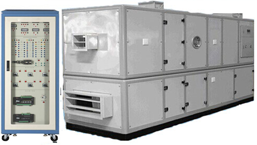 LG-KTZ01型 組合式空調(diào)機組實訓裝置應集制冷系統(tǒng)、空氣處理、過程控制、工程組態(tài)技術于一體。組合式空調(diào)機組本身不帶冷、熱源,是以冷、熱水或蒸汽為媒介,用以完成對空氣的過濾、加熱、冷卻、加濕、消聲、熱回收、新風處理和新、回風混合等功能。能實現(xiàn)一次回風系統(tǒng)、二次回風系統(tǒng)的空氣處理過程,其配置及功能如下: