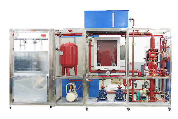 消火栓及預作式自動噴淋滅火系統(tǒng)實訓裝置有控制區(qū),消防供水池、高位水泵保護區(qū)域、等主要配備有預作用報警裝置、消防氣壓罐、消防火栓箱、消防栓、消防帶、消防水泵、高位水泵、備用泵、氣壓泵、感煙探測器、感溫探測器、自動充氣裝置、水流指示器、信號碟閥、壓力開關的狀態(tài)檢測,設有全透明護區(qū)域、具有火災模擬演示等。
