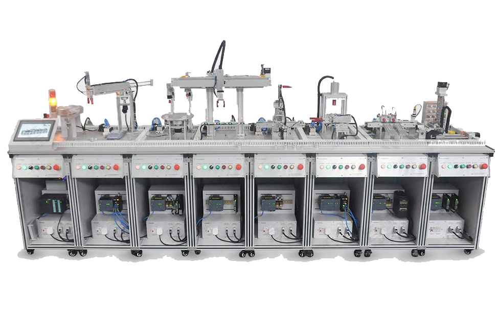 LGJ-RX08模塊化柔性自動化生產(chǎn)實(shí)訓(xùn)系統(tǒng)(八站式)是在LGJ-RX06型 模塊化柔性自動化生產(chǎn)實(shí)訓(xùn)系統(tǒng)(六站式)基礎(chǔ)上拓展為復(fù)雜的工件裝置站與自動沖壓站,工作站點(diǎn)達(dá)到 8個(gè)之多進(jìn)一步加深了對控制要求。LGJ-SJ65綜合了實(shí)際工業(yè)生產(chǎn)中大量應(yīng)用到的復(fù)雜控制過程的教學(xué)培訓(xùn)裝置,根據(jù)現(xiàn)代生產(chǎn)物流系統(tǒng)發(fā)展和未來趨勢而專門設(shè)計(jì),它以培養(yǎng)學(xué)生專業(yè)知識應(yīng)用能力、綜合實(shí)踐能力、創(chuàng)新能力為主要目標(biāo)。