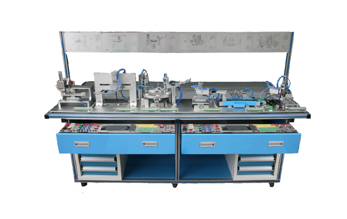 LGJ-Q02 氣動(dòng)工業(yè)自動(dòng)化綜合實(shí)訓(xùn)裝置操作平臺(tái)采用創(chuàng)新式雙面設(shè)計(jì)理念。在平臺(tái)正上方設(shè)長(zhǎng)條面板,展示各種應(yīng)用回路示教圖及操作流程注意事項(xiàng)和功能模塊說(shuō)明;而平臺(tái)下方為抽屜式控制系統(tǒng)安裝抽屜,需要進(jìn)行電氣控制時(shí)拉出進(jìn)行連接即可。電氣控制器采用了自主研發(fā)的超小型模塊盒組裝式,并配備有方便拆卸塑料彈卡可隨意安裝于控制抽屜;抽屜下方兩側(cè)均為一個(gè)2抽屜式零件柜,該柜體中上層為工具及資料框,下層為方格式氣動(dòng)/電氣元件放置抽屜,平臺(tái)*下方中間位空出位置用于擺放閑置的功能模塊。