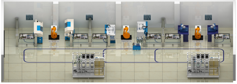 LGJ-ZZ02型 智能機器人個性化訂制綜合生產(chǎn)線由數(shù)控車床加工單元、數(shù)控銑床加工單元、數(shù)控雕刻加工單元、自動化立體倉儲單元、工業(yè)機器人上下料單元、AGV運載單元、監(jiān)控單元等多個功能模塊單元組成。
