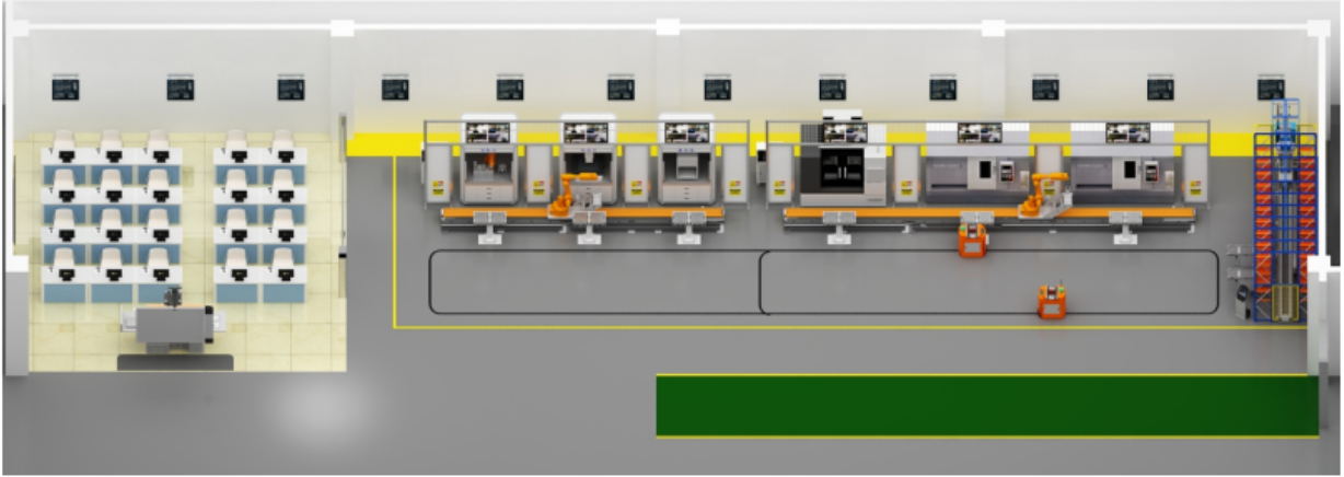 數(shù)字化協(xié)同制造與設(shè)計中心、數(shù)控機床加工制造單元及其自動化改造、自動化清洗單元、,自動化檢測單元、自動化裝配單元、自動化立體倉儲單元、多軸移動工業(yè)機器人上下料單元、AGV運載單元、監(jiān)控單元、系統(tǒng)中央控制單元