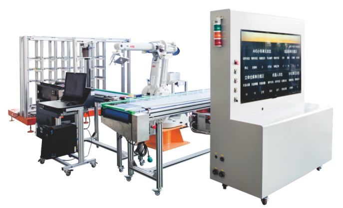 LGY-ZN021A型工業(yè)機(jī)器人智能傳輸分揀控制實(shí)訓(xùn)系統(tǒng)由工業(yè)機(jī)器人作為主體控制對(duì)象,能滿足模擬生產(chǎn)過程中的上料、AGV傳輸、圖像識(shí)別、分揀、入垛等環(huán)節(jié),裝置中包括工業(yè)機(jī)器人、PLC控制系統(tǒng)、AGV小車、皮帶傳輸環(huán)節(jié)、視覺檢測(cè)系統(tǒng)、RFID系統(tǒng)、分揀裝置、原材料立體倉(cāng)儲(chǔ)等單元,同時(shí)設(shè)備加入電子看板系統(tǒng),用來顯示生產(chǎn)環(huán)節(jié)。