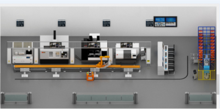 數(shù)控機(jī)床加工制造單元及其自動化改造、自動激光打標(biāo)單元、自動化立體倉儲單元、工業(yè)機(jī)器人上下料單元、 AGV運(yùn)載單元、監(jiān)控單元、系統(tǒng)中央控制單元等多個功能模塊單元組成了智能制造生產(chǎn)線系統(tǒng).