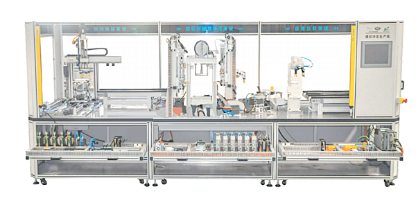 該生產(chǎn)系統(tǒng)由3個工作站點組成,共分為8個機械裝置功能模塊和3套電氣控制系統(tǒng)模塊。系統(tǒng)可進行單機構(gòu)控制培訓(xùn),也可以進行組合聯(lián)機集成培訓(xùn)。各功能模塊見如下說明。