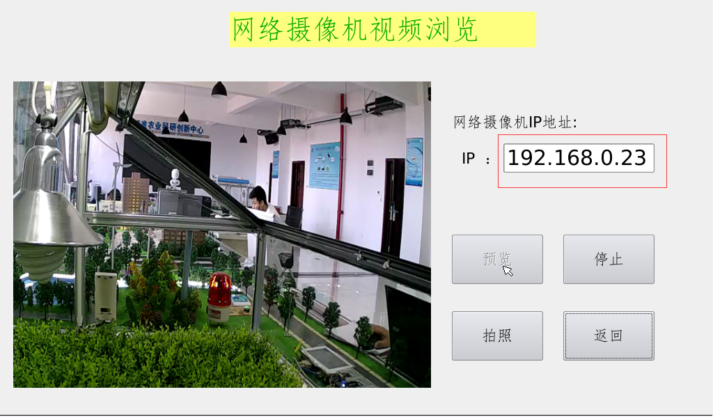 功能:用于視頻監(jiān)控,通過控制云臺上下左右移動,以觀察大棚內(nèi)各個角落狀況及抓拍。