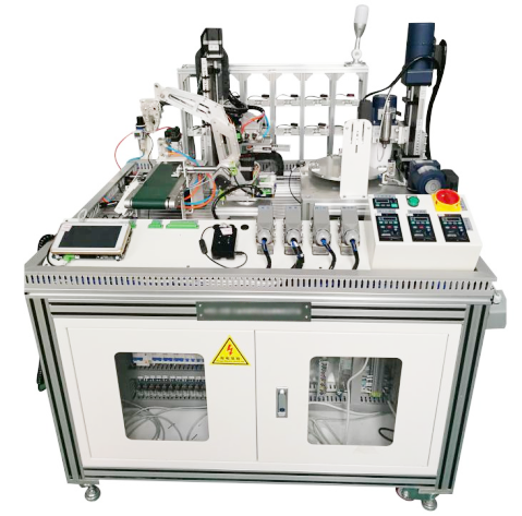 實訓(xùn)臺由立體倉儲單元、轉(zhuǎn)臺模擬加工單元、視覺檢測單元、搬運單元、流水線單元、次品分揀單元、電氣控制箱等組成。配備PLC主控模塊、HMI觸摸屏、電源模塊、驅(qū)動模塊、人機(jī)交互模塊等,包含步進(jìn)電機(jī)驅(qū)動、減速電機(jī)驅(qū)動器、變頻器、氣缸,及光電傳感器、金屬接近傳感器、編碼器等各類常用傳感器。