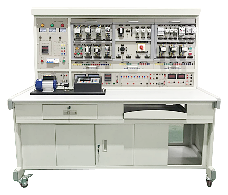 高性能初級維修電工及技能考核實(shí)訓(xùn)裝置控制屏為鐵質(zhì)雙層亞光密紋噴塑結(jié)構(gòu),鋁質(zhì)面板。為實(shí)驗(yàn)提供交流電源、高壓直流電源、低壓直流電源及各種測試儀表等。具體功能如下: