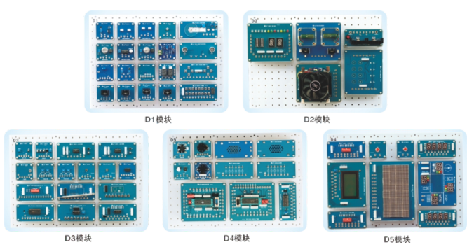 本設(shè)備是將實(shí)際應(yīng)用中單元電路模塊化。學(xué)生通過(guò)模塊間的搭接,很方便就能搭建成各種實(shí)際產(chǎn)品,模塊搭成產(chǎn)品的范圍涉及家電,工業(yè),無(wú)線等方面內(nèi)容。單元模塊電路包括傳感器,信號(hào)處理,顯示,執(zhí)行本體,接口電路,微處理器等模塊。模塊都采用透明盒裝配,模塊間采用排插和接線柱連接,使實(shí)訓(xùn)模塊能夠靈活按教學(xué)要求或競(jìng)賽要求搭建成各種實(shí)際產(chǎn)品。