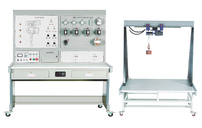 LGDQ-PDH型電動葫蘆電氣技能實訓考核裝置由電源控制部分、機床電氣控制部分、半仿真機床實物部分構成。電源控制部分包括實訓定時、定時報警、安全用電自動控制等,機床電氣控制部分把整臺機床內部電器裝在正面面板上,能直觀地觀察機床工作時各電器的動作狀況。故障點在面板上設有相應測試點,供實訓考核者測試用。仿真機床部分能模擬機床各種運動。通過電動葫蘆電氣技能實訓考核裝置的實訓能使學員掌握機床常見故障的現(xiàn)象、故障產生的大概部位,熟練掌握機床電路工作原理,其是維修電工初、中、高級技能鑒定的理想實訓設備。
