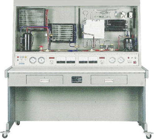 1.系統(tǒng)集模擬空調(diào)、模擬冰箱于一體,采用真實(shí)的制冷機(jī)組,滿足實(shí)際教學(xué)