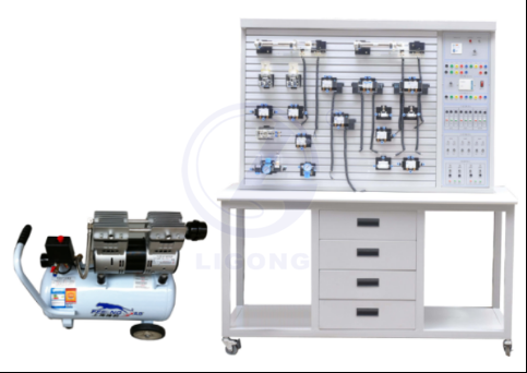 氣動(dòng)元件有氣控、電控和手控等方式,氣動(dòng)回路可采用獨(dú)立的繼電器控制單元進(jìn)行電氣控制,也可采用PLC控制;各個(gè)氣動(dòng)元件成獨(dú)立模塊,均裝有帶彈性插腳的底板,在通用鋁型材板上構(gòu)建成各種氣動(dòng)回路:集各種真實(shí)的氣動(dòng)元件、繼電器控制單元、PLC編程控制技術(shù)于一體。帶有電流型漏電保護(hù),系統(tǒng)額定壓力保護(hù)。