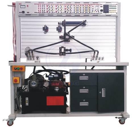 工具柜:實(shí)驗(yàn)臺(tái)配備4抽屜和1個(gè)柜體工具柜,可存放液壓元件、文件資料等;