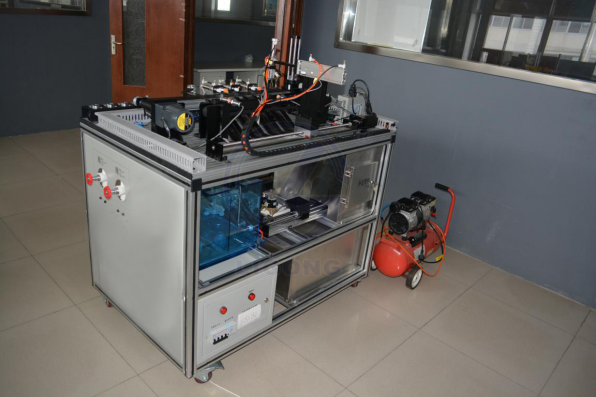 LGMX-08型 機(jī)電液綜合實(shí)驗(yàn)實(shí)訓(xùn)裝置是針對(duì)機(jī)電一體化綜合實(shí)訓(xùn)裝置,由鋁合金導(dǎo)軌式實(shí)訓(xùn)臺(tái)、機(jī)電一體化、儀表校驗(yàn)與檢測(cè)、儀表自動(dòng)化、過程控制、熱處理爐控制教學(xué)的要求而研發(fā)的。設(shè)備對(duì)象分上下兩層,主要包含四大功能部分,分別為液位儀表控制、液位溫度控制、熱處理控制及運(yùn)動(dòng)控制部分。設(shè)備結(jié)構(gòu)分為上下兩層。下層為液位儀表控制系統(tǒng)、液位溫度控制系統(tǒng)、熱處理系統(tǒng)。上層為運(yùn)動(dòng)控制部分。涵蓋了PLC、氣動(dòng)控制、電機(jī)傳動(dòng)、電磁鐵控制、位置控制、傳感器檢測(cè)等學(xué)科,是實(shí)際工業(yè)現(xiàn)場(chǎng)生產(chǎn)設(shè)備的微縮裝置。基于多種傳感器的檢測(cè)及旋轉(zhuǎn)編碼器的精確定位,多種電機(jī)(步進(jìn)、伺服、普通減速電機(jī)、雙速電機(jī))控制方式,實(shí)現(xiàn)對(duì)不同材質(zhì)、不同顏色物體的分揀,6個(gè)方向機(jī)械手控制控制;并具有模擬化工過程自動(dòng)化控制、儀表檢測(cè)實(shí)訓(xùn)、PID調(diào)節(jié)等多種過程控制方式;裝置還具有冶金行業(yè)的熱處理爐控制方式、能夠模擬熱處理爐的冶金控制,小車裝卸料控制。適合于自動(dòng)化、電氣自動(dòng)化、電氣工程等專業(yè)的《運(yùn)動(dòng)控制》、《氣壓系統(tǒng)》、《機(jī)電一體化技術(shù)》、《檢測(cè)與轉(zhuǎn)換技術(shù)》、《可編程控制技術(shù)》、《儀表檢測(cè)》《傳感器技術(shù)》《過程控制》《工業(yè)自動(dòng)化》《熱處理爐控制》《冶金控制技術(shù)》等課程開設(shè)實(shí)訓(xùn)課。