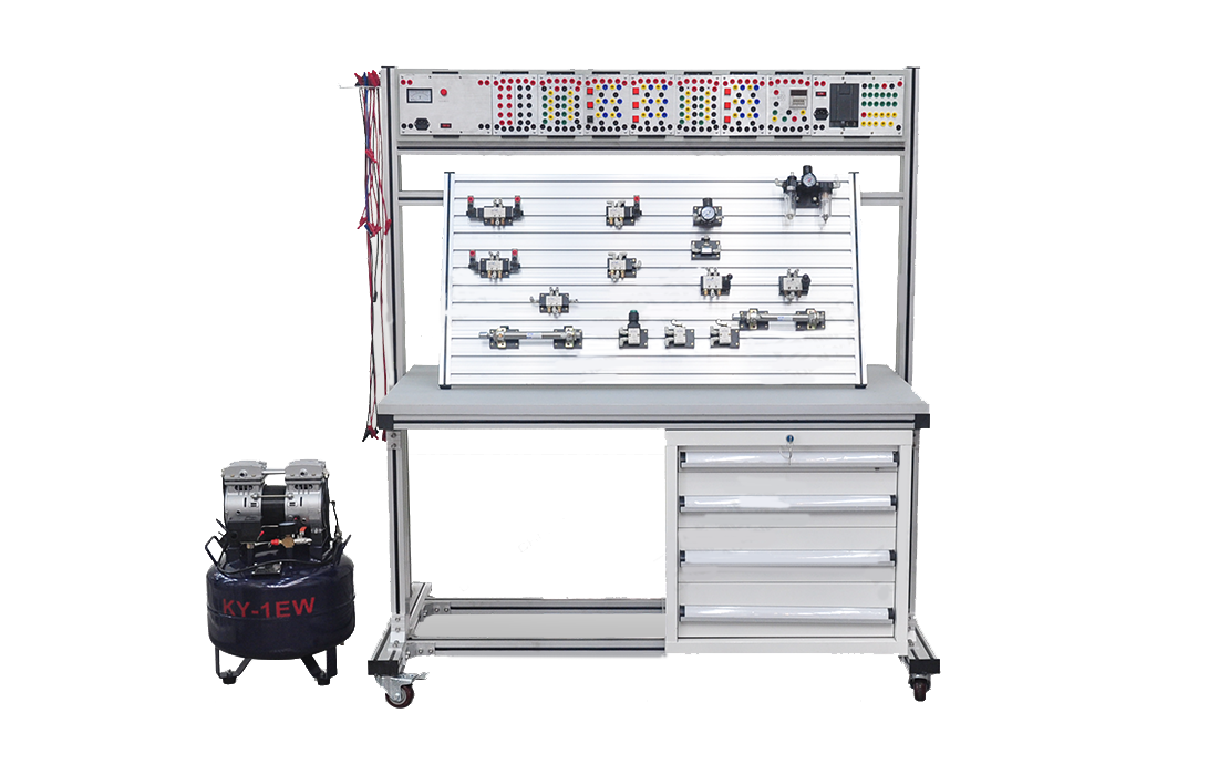 LGJ-DYQ03型 單面工業(yè)液壓氣動實訓臺依據(jù)國家高等院校、職業(yè)技術(shù)院校的《液氣壓傳動》、《氣動控制技術(shù)》教學大綱、實驗教學大綱, 針對當前的實驗教學現(xiàn)況而專業(yè)設(shè)計的氣動教學實驗臺。單面工業(yè)液壓氣動實訓臺覆蓋了氣動技術(shù)、PLC自動控制技術(shù)、傳感器應(yīng)用技術(shù)等多項技術(shù),是氣動技術(shù)和控制技術(shù)的完美結(jié)合。