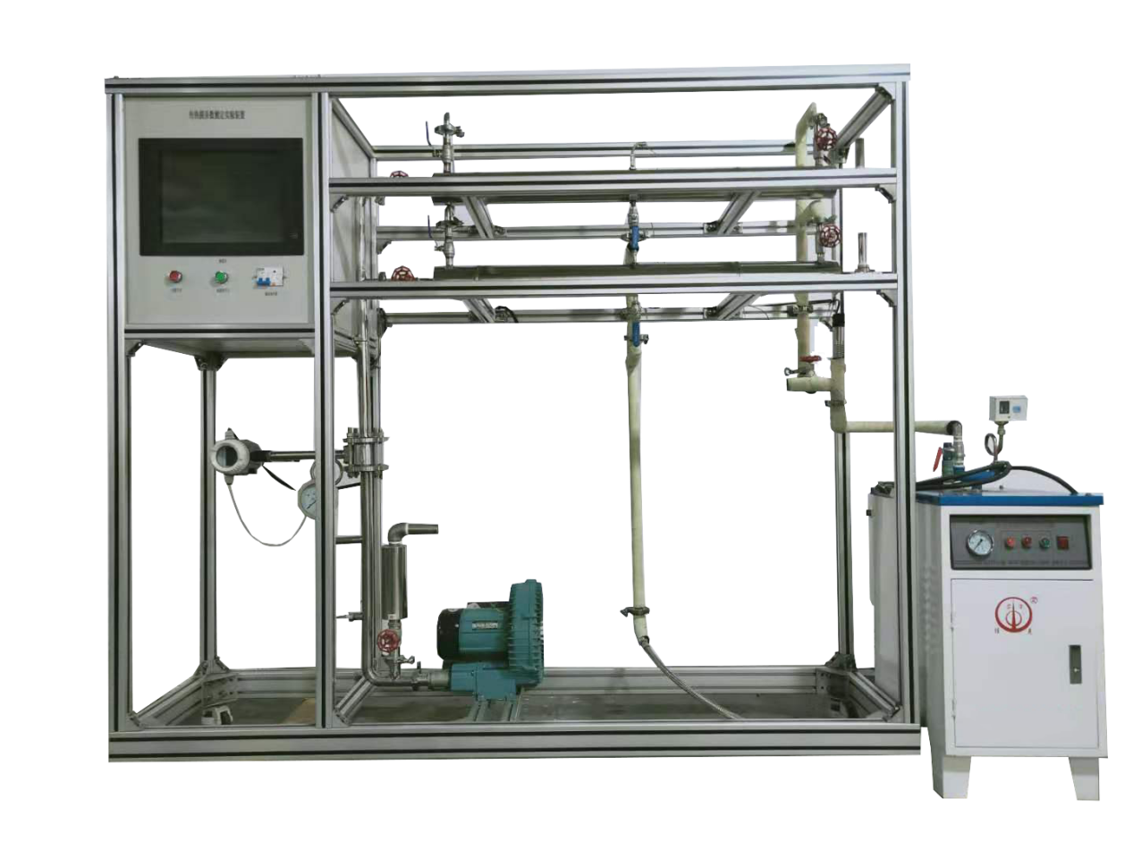 蒸汽發(fā)生器1臺、套管換熱器1臺、冷凝液回收器1個、漩渦氣泵1臺、孔板流量計(jì)1個、壓力傳感器1個。