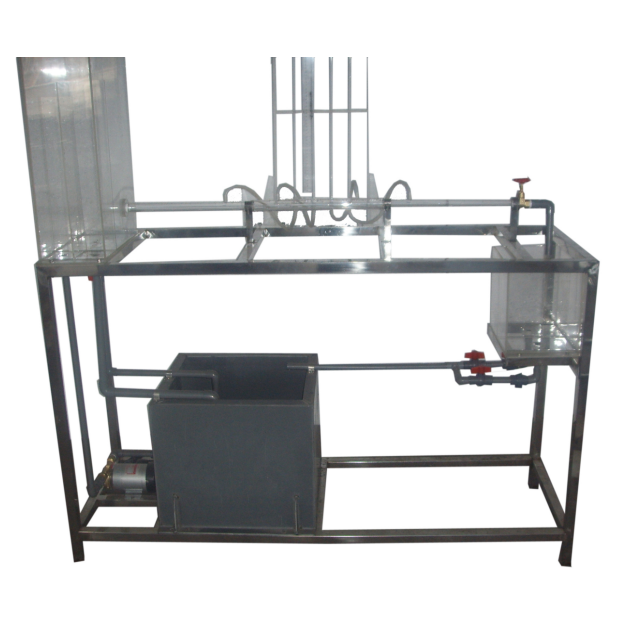 有機(jī)玻璃實(shí)驗(yàn)水箱、局部阻力管、測壓管、水泵、蓄水箱、計(jì)量水箱、刻度標(biāo)尺、秒表、玻璃溫度計(jì)、自循環(huán)裝置、閥門、不銹鋼框架。