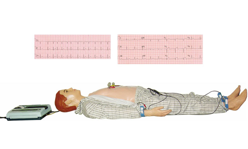 在醫(yī)學教育中,傳統(tǒng)的教學方法只能從人體獲取心電圖供學員閱讀分析。心電圖實習是學員分組描記正常心電圖,而異常心電圖,只能讓學員閱讀分析現(xiàn)有心電圖圖形資料。為解決心電圖實習難的問題,我公司研制成功了LG-XDI 多種心電圖電腦模擬人,已批量生產(chǎn),在醫(yī)學院校中推廣使用深受師生歡迎。本產(chǎn)品采用微電腦控制,模擬人體內(nèi)中存儲有48種正常及異常心電信號,每種心電圖信號都采用模擬數(shù)字代碼表示。使用時連上普通心電圖機或心電監(jiān)護儀,將心電圖機的導聯(lián)線分別連接四肢和胸前相關部位,教學實習或考核時在仿真模擬人面板上操作代碼按鈕,根據(jù)教學需要輸入某心電圖的代碼,通過心電圖機或心電監(jiān)護儀便能自動描繪這一心電特征波形。12導聯(lián)心電圖均可繪出,波形逼真而且心率可調(diào)。用現(xiàn)場制作的這種“真實”的心電圖進行教學和考核更加貼近臨床,是真病人心電圖的模擬再現(xiàn)??纱蟠筇岣邔W員的學習興趣,顯著提高技能訓練和技能考核的教學質(zhì)量。